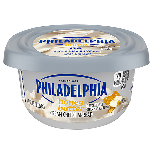Dive into immersive pleasure with Philadelphia Honey Butter Flavored With Other Natural Flavors Cream Cheese Spread. Made with fresh milk, real cream, honey and smooth butter for an extra creamy, multi-dimensional taste you can add to any meal. At Philly, we leave out the artificial preservatives, flavors and dyes to ensure a rich, quality flavor. Our sweet cream cheese spread is easy to spread, making it the perfect choice for adding to your morning bagel or topping warm rolls. Keep our 7.5 ounce reclosable container of cream cheese spread refrigerated. With Philadelphia Cream Cheese Spread, enjoy a rich, creamy experience you don't just taste, you feel.