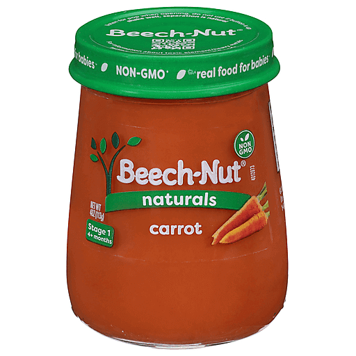 Beech-Nut Naturals Baby Food is made with simple, non-GMO ingredients. Our carrot baby food puree has no artificial preservatives, colors or flavors and no added sweeteners--just what you'd expect for baby's first foods. Our fruits and veggies are gently cooked to preserve color, flavor, and nutrients to create a puree that's perfect for introducing solids. Free of the following allergens: dairy, gluten, peanut, soy, egg. This Stage 1 baby food jar is ideal for your baby 4 months and up.