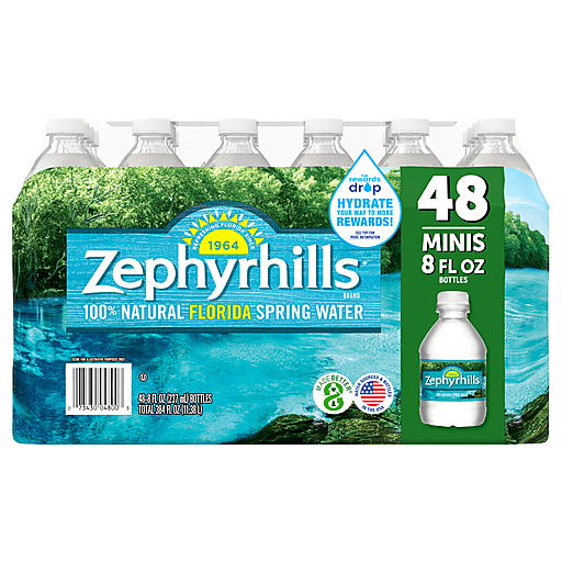 Get back to nature with Zephyrhills Brand Florida Spring Water. Carefully sourced from natural springs located in the great state of Florida, it contains naturally occurring electrolytes for a crisp, clean taste you'll love. And with a better bottle made with 100% recycled plastic* and 100% recyclable, you know that you're not just getting the best that nature has to offer, you're doing your best to help us conserve it too. So grab a pack and get ready for whatever fuels you. Zephyrhills water is available in a variety of sizes, so you can easily stay hydrated no matter where you are. From your gym bag to your hiking pack, at the office, on the go or at home, you can pick up the perfect size for wherever your life takes you. Stock the fridge so your family always has crisp, refreshing hydration on hand. Plus, the more you drink, the more you can earn with The Rewards Drop. Get points with every purchase toward event tickets, merchandise and more – see packaging for details. It's one more reason to enjoy the distinctively fresh taste from the Sunshine State. *20 oz, 700mL, 1L, 1.5L still water bottles only. Excludes label and cap.