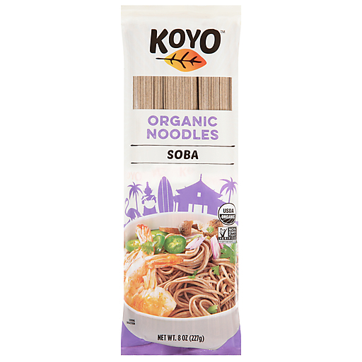 KOYO ORGANIC SOBA ASIAN PASTA IS EXPERTLY CRAFTED IN THE ROLL AND CUT MANNER FROM FRESHLY-MILLED ORGANIC HEIRLOOM WHEAT AND ORGANIC HEIRLOOM BUCKWHEAT. OUR NUTRITIOUS SOBA NOODLES ARE ALL-NATURAL AND CERTIFIED USDA ORGANIC. OUR ORGANIC SOBA COMES IN ONE 8 OZ. PACKAGE AND CONTAINS THREE BUNDLE SERVINGS.